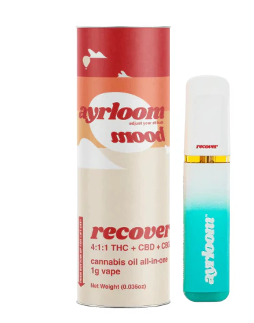 Find your balance with the Ayrloom Recover 4:1:1 THC:CBD:CBG Disposable Vape – 1 g, formulated for gentle relief and smooth effects. This carefully crafted vape blends THC with CBD and CBG in a 4:1:1 ratio to support calming sensations and a balanced experience without overwhelming intensity.